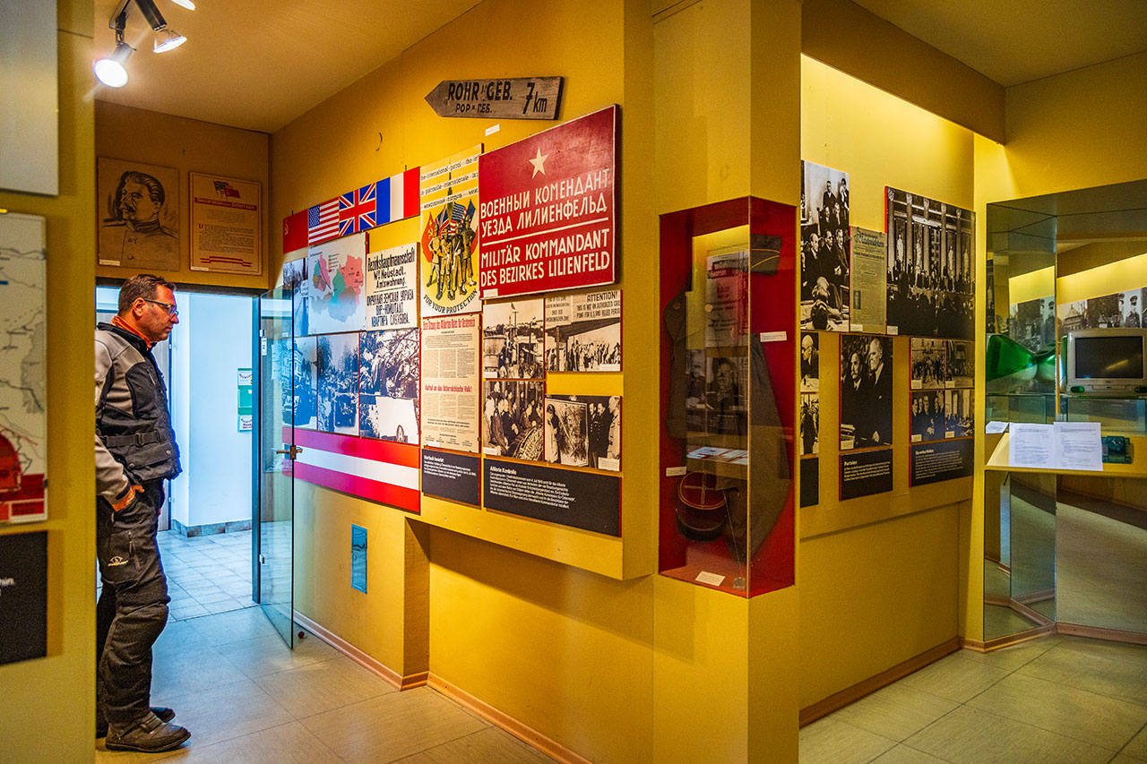 Dr. Karl Renner und ein Mitglied der Widerstandsgruppe O5 sprachen mit den Russen über eine Abkürzung der Kämpfe um Wien sowie die Wiederinstandsetzung demokratischer Einrichtungen in Österreich. Diese Gespräche führten zur Gründung einer provisorischen Regierung und waren auch die Geburtsstunde der Zweiten Republik – ein Umstand, über den in Österreich kaum jemand Bescheid weiß. Knapp 200 Dokumente und Fotos zeugen im „Gedenkraum 1945“ von den damaligen Geschehnissen.
