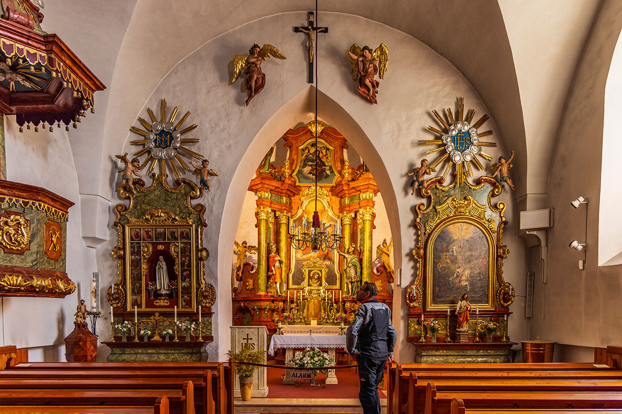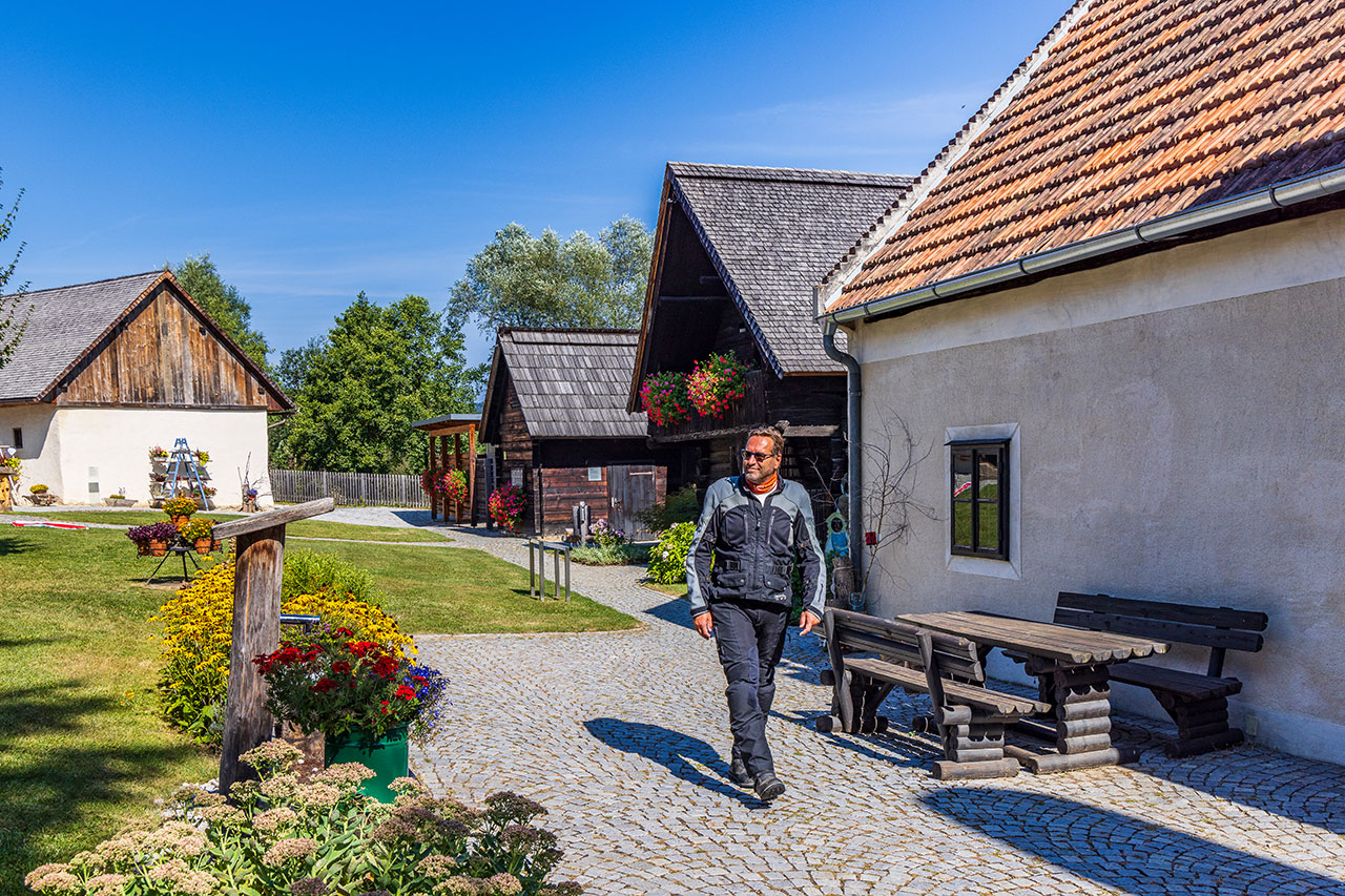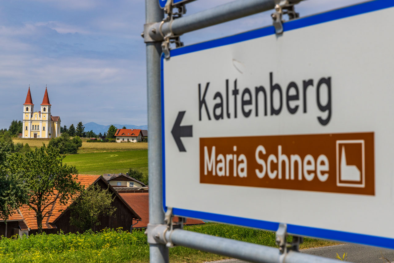 Weithin sichtbar sind die gelben Doppeltürme der Wallfahrtskirche Maria Schnee, die im Gegensatz zu vielen anderen Gotteshäusern der Buckligen Welt geradezu einladend wirkt. Der Grund für die abweisende Gestaltung vieler Kirchen ist leicht erklärt, blickt man aus dem Land der tausend Hügel Richtung Osten. Der Blick reicht zwar nicht ganz bis zur Chinesischen Mauer, aber gefühlt muss sie da hinten irgendwo stehen. Die scheinbar endlose pannonische Tiefebene verliert sich hinter dem Neusiedler See im Dunst. Für einfallende Reiterhorden bietet das flache Land jedoch keine nennenswerten Hindernisse, und daher ist es kein Wunder, dass aus dieser Richtung nicht nur freundliche Gäste und Handelsreisende kamen, sondern auch ungebetener Besuch.