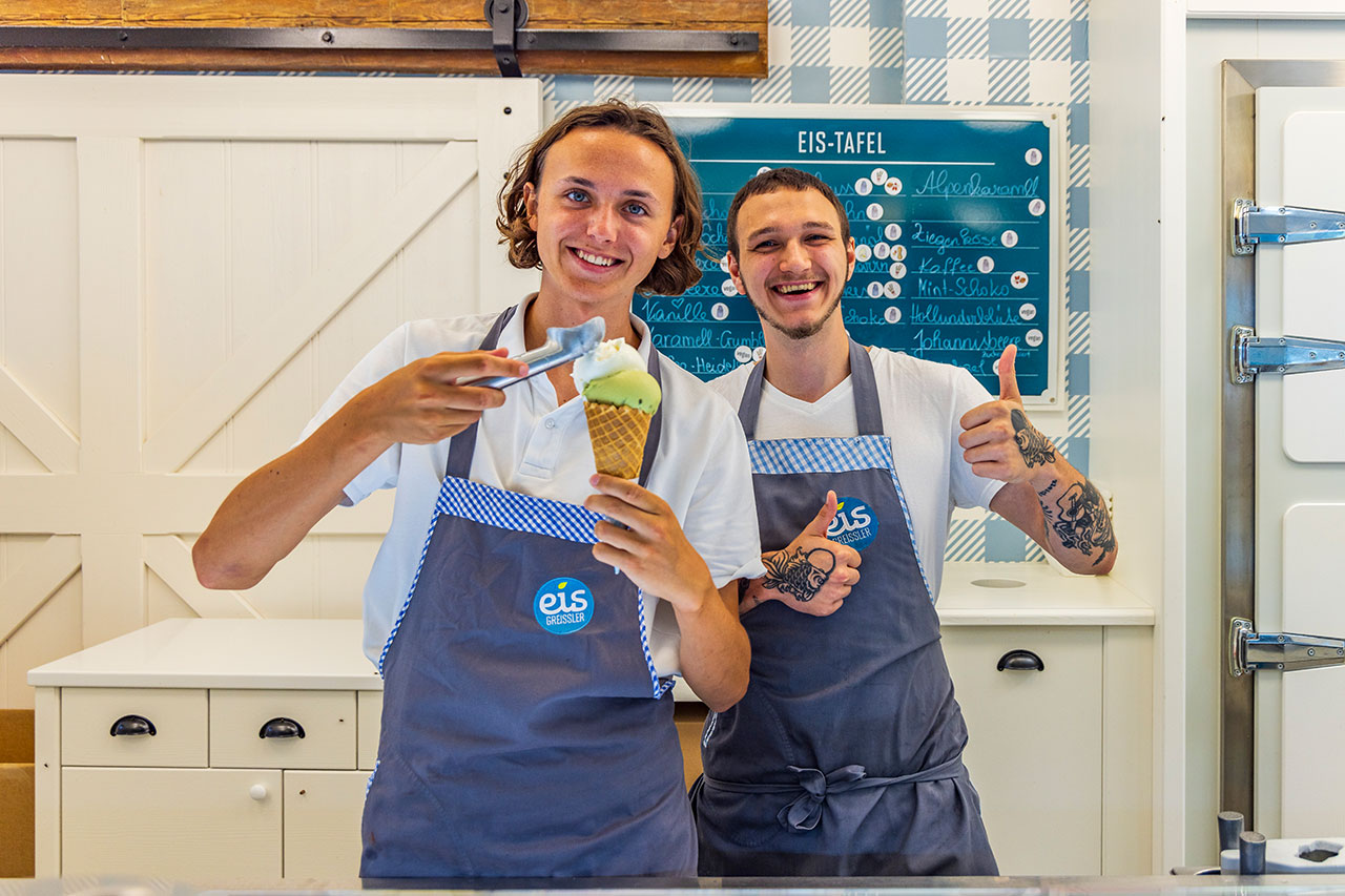 Ein gewaltiger Parkplatz liegt heute dort, wo Andrea und Georg Blochberger in Krumbach früher einen einfachen Bauernhof mit ungefähr 50 Kühen bewirtschaftet hatten. Der Eis-Greissler betreibt mittlerweile Filialen in ganz Österreich, und aus dem Bauernhof ist eine Erlebniswelt für Jung und Alt geworden. Wer nicht bei einer Eis-Zeitreise hinter die Kulissen der Eisproduktion schauen möchte, sollte sich zumindest die Zeit nehmen, das köstliche Ergebnis in Ruhe zu genießen. Ich bin mir sicher, ihr werdet mit mir der Meinung sein, dass der Slogan „Aus Muuh! wird Wow!“ keineswegs übertrieben ist.