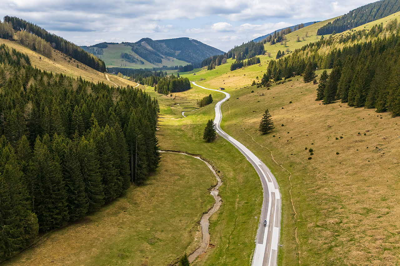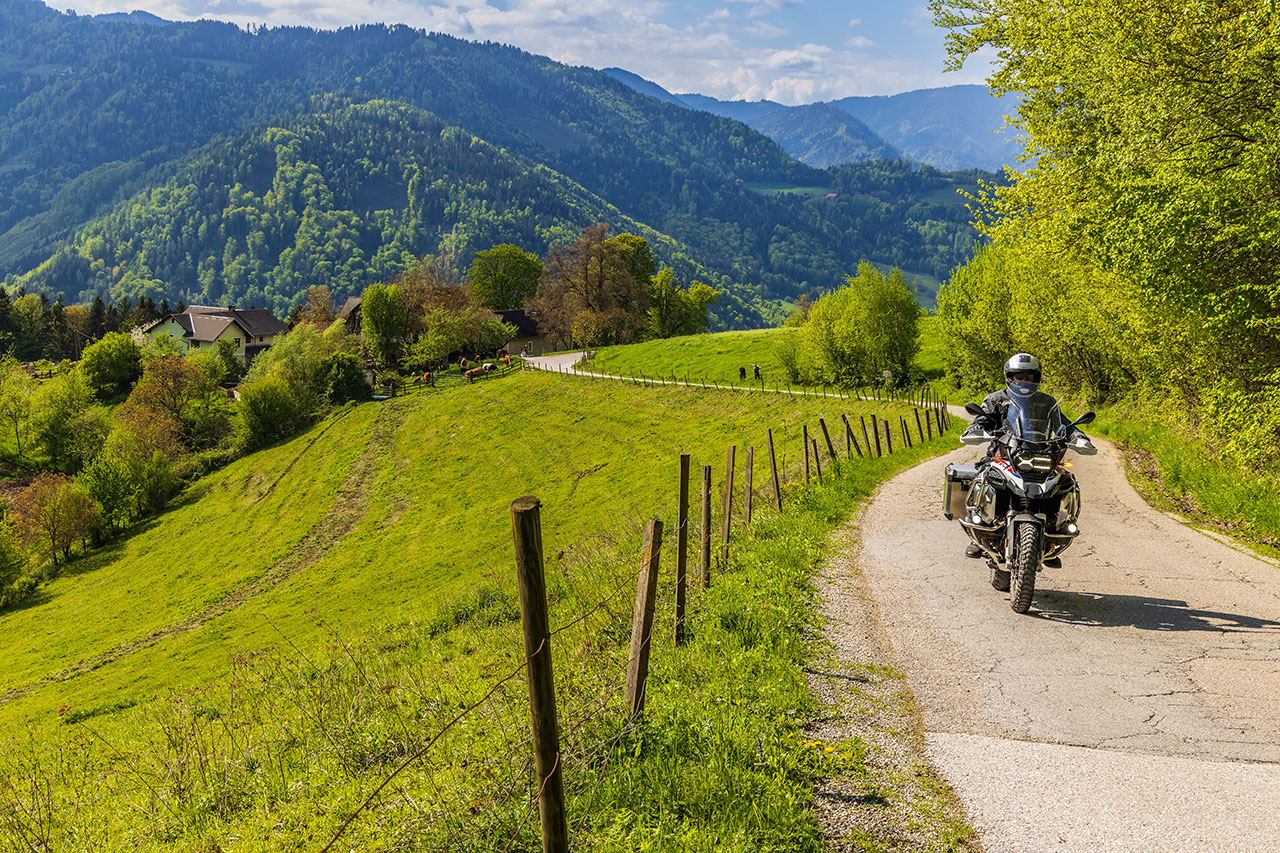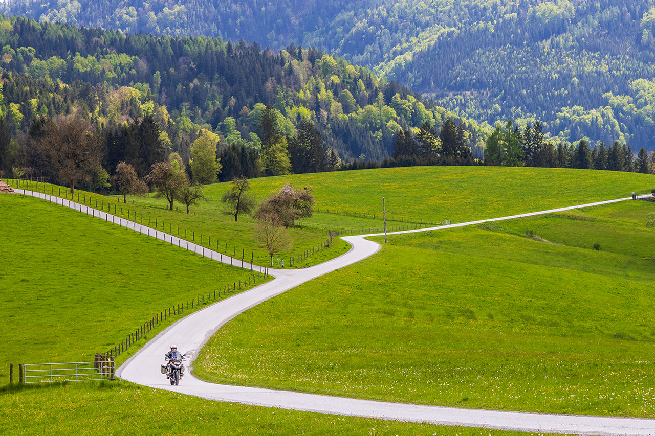 Blumenwiesen, Streuobstwiesen und Getreidefelder im Süden, schroffe Felswände und saftig-grüne Almen im Norden: Das abwechslungsreiche Gesicht der Oststeiermark weiß zu begeistern. Durch die abwechslungsreiche Topografie finden wir auf engstem Raum sowohl entspannten Kurvengenuss auf kleinen Nebenstraßen als auch nennenswerte Schräglagen auf ehemaligen sowie bis heute aktiven Bergrennstrecken.
