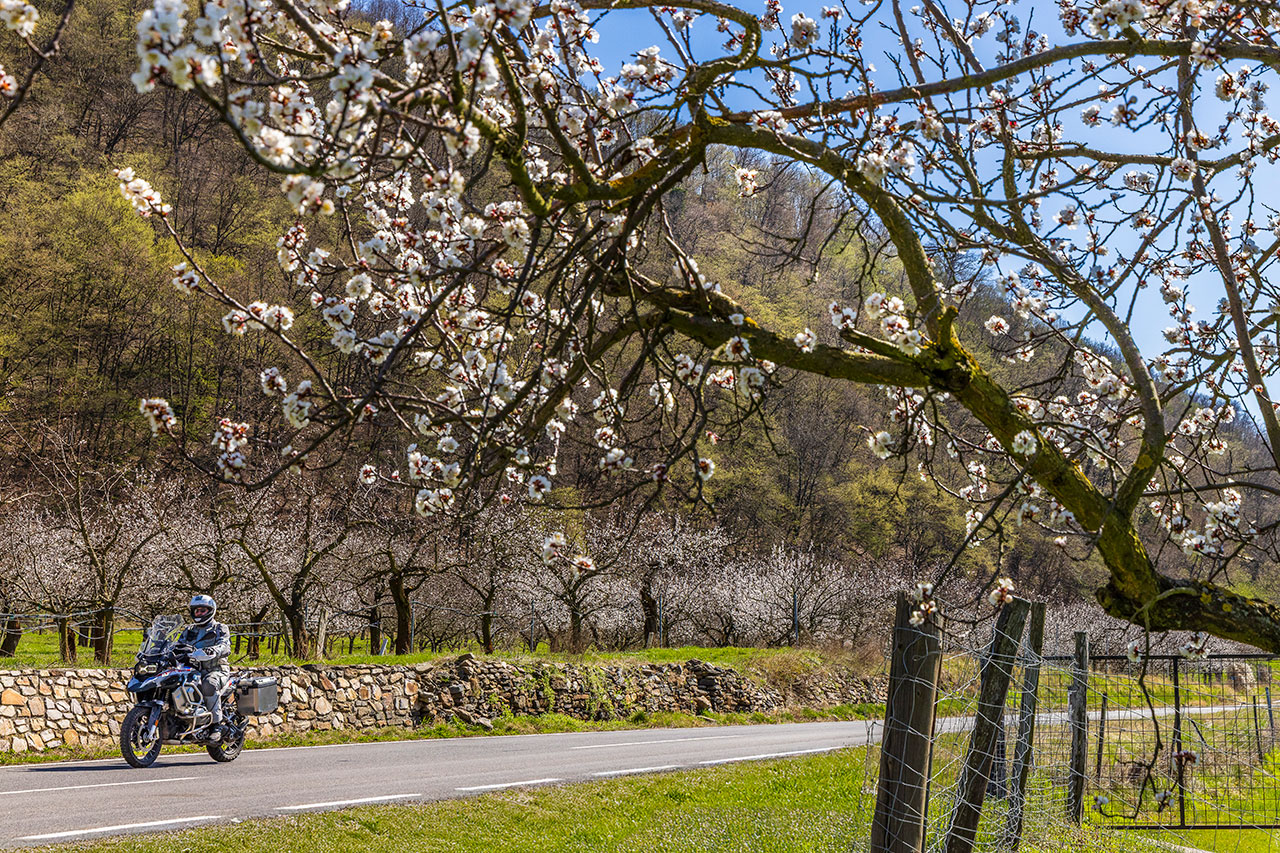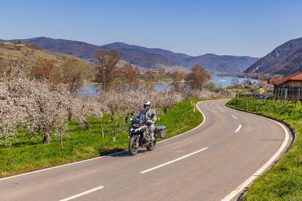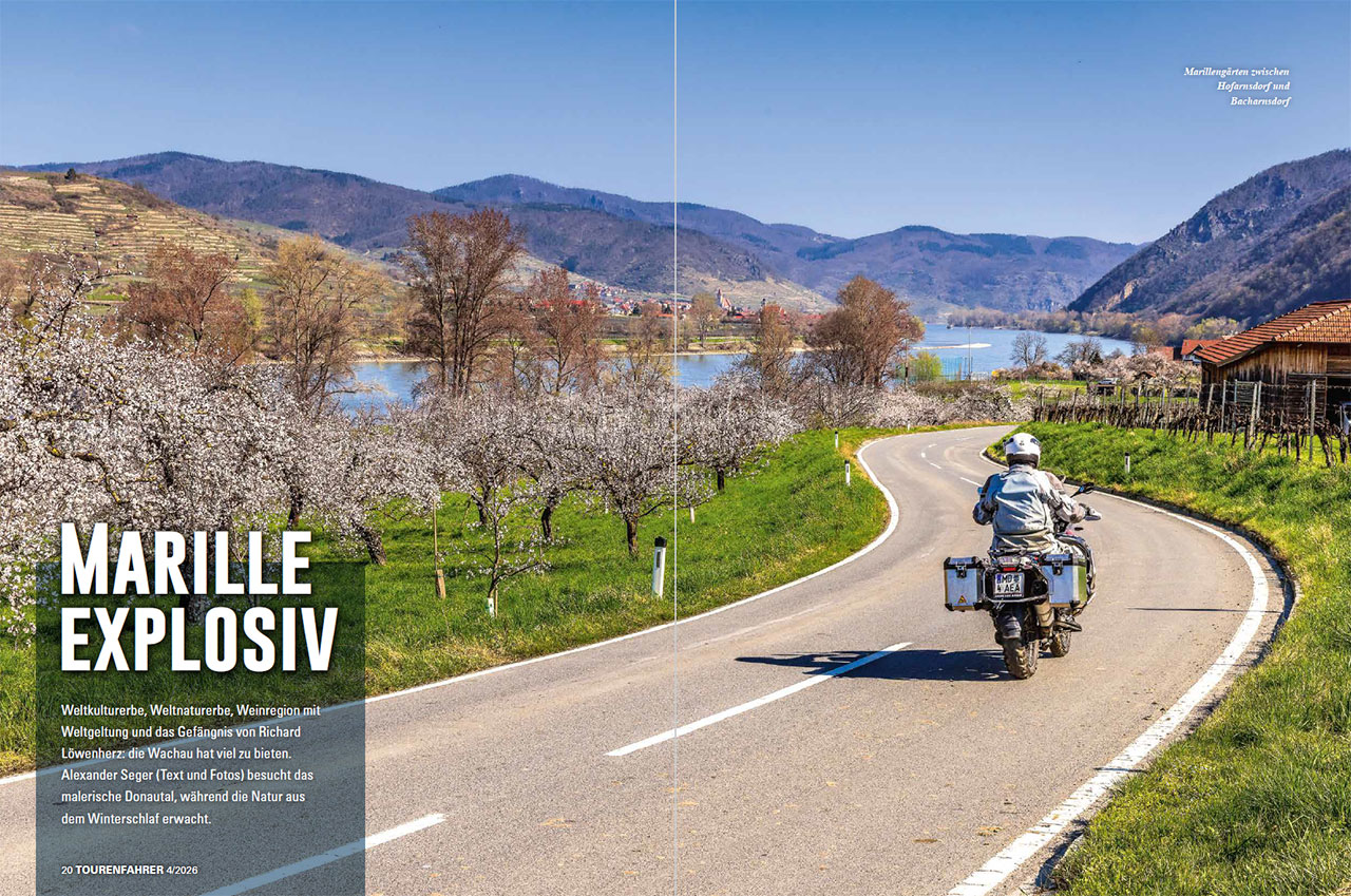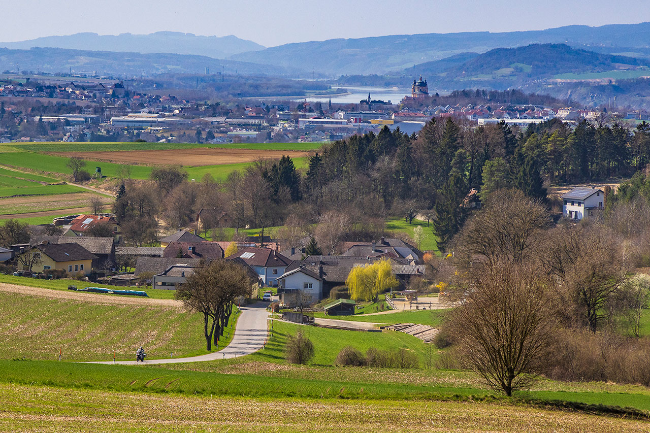 Wo genau die Grenze zwischen der Wachau und dem angrenzenden Waldviertel liegt, erkennt man intuitiv, wenn man sich vom linken Donauufer ins angrenzende Hügelland aufmacht. Vorbei an der Justizanstalt Stein führt der Weg ins verkehrsarme Hinterland. Begleiten zuerst Weinreben die Straße, ändert sich die landwirtschaftliche Nutzung nach zwei, drei Kurven auf Getreide und Feldfrüchte. Eine schräglagenfreundliche Straße bringt mich zurück nach Weißenkirchen, eine noch spannendere Route führt gleich wieder zurück bergauf: Der Seiberer. 1924 fand hier das erste Bergrennen statt, mittlerweile wird die Motorsportveranstaltung am letzten Aprilsonntag als Gleichmäßigkeitswettbewerb für historische Kraftfahrzeuge ausgetragen.